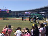 ホークス選手の試合前練習の様子を特別エリアで見ることができます。