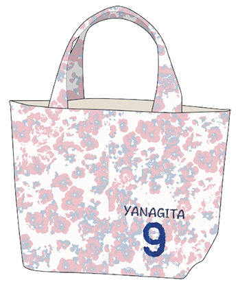 選手名・背番号の刺繍が入った「FLOWER」柄のランチバッグで、内側のファスナーを開けると保冷バッグとしても使えます。