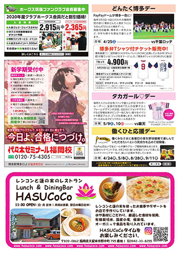 ※一部配布されない地域があります。また、『ホークスだより』の郵送対応は行っておりませんので、あらかじめご了承ください。