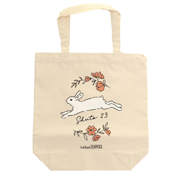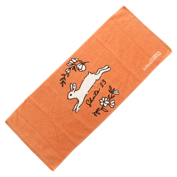 周東選手が好きなオレンジ色をベースに、足が速い動物「うさぎ」と「お花」をデザイン♪