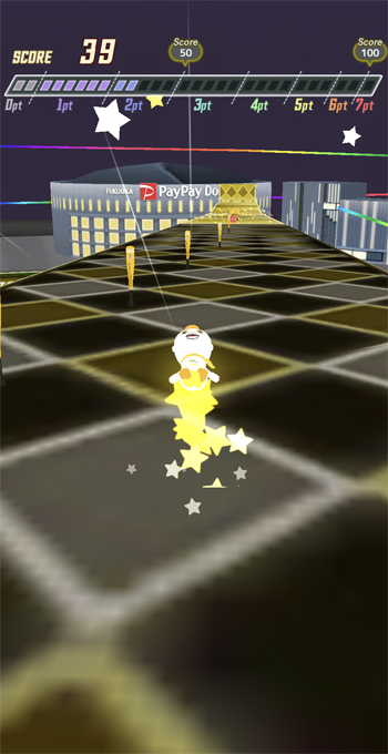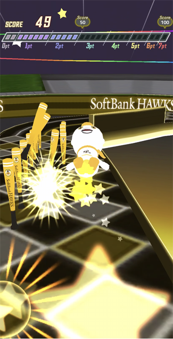 道の途中にあるこふうさんを獲得するとボーナスポイントを獲得。「BIG」アイテムを取るとふうさんが巨大化してより多くのピンを獲得する大チャンス!