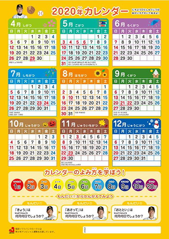 裏面は、2020年のカレンダーといっしょに、日にちや祝日の読み方を学習できる内容になっています。