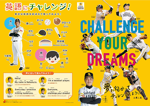 裏面は、今年度から本格化される英語教育を、野球に関係するものや身近なものを通じて学べる内容になっています。