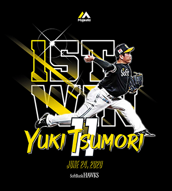 2020年6月24日(水)埼玉西武ライオンズ戦で津森宥紀投手がプロ初勝利を達成いたしました!これを記念して記念TシャツをHAWKS公式オンラインストアとHAWKS STORE PayPayドーム店にて数量限定で販売中です。