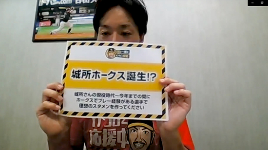 開幕3戦目となった6月21日(日)、おうち観戦を盛り上げるため、ホークスOB城所龍磨さんとのオンライン観戦イベントを開催しました。