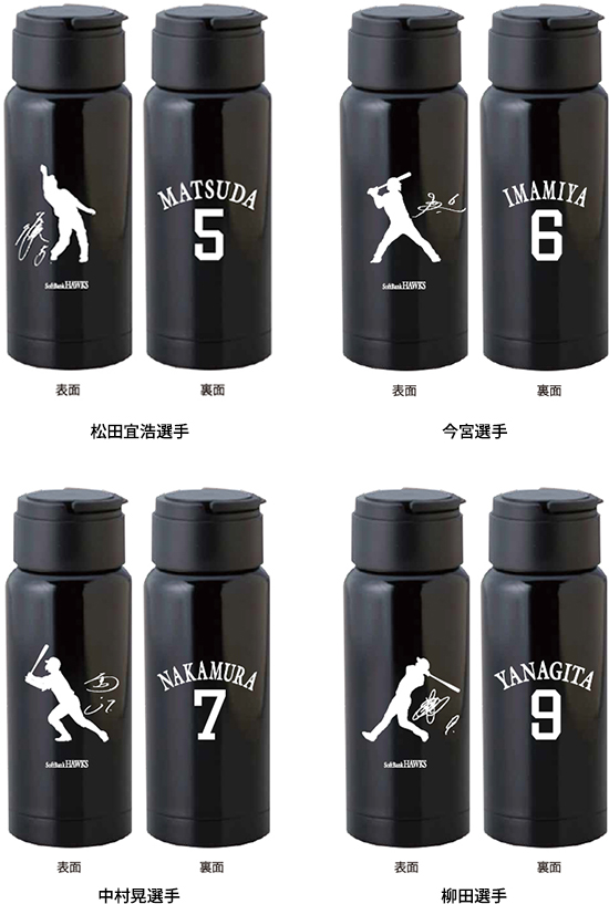 選手をモチーフにしたデザインのステンレスボトルがついたチケット。普段使いしやすいモノトーンのステンレスボトルは真空構造なので保温保冷機能もばっちりです☆