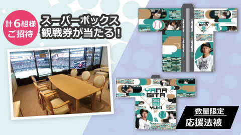 おうちで応援を盛り上げる!選手のプレー写真がたくさん使用された応援法被が数量限定で新登場!また、豪華スーパーボックス観戦券があたるキャンペーンを実施中です。
