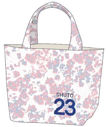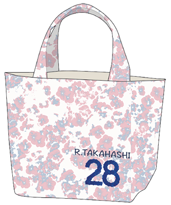 選手名・背番号の刺繍が入った「FLOWER」柄のランチバッグで、内側のファスナーを開けると保冷バッグとしても使えます。