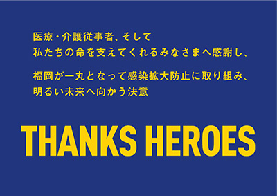 今年は、「THANKS HEROES」をテーマに、新型コロナウイルスと献身的に対峙していただいた医療従事者の皆さまへ感謝を伝えるとともに、感染拡大防止への決意を込めた取り組みとして、福岡県、および福岡県医師会のご協力をいただき、県内の医療従事者の皆さまへ17万着のユニフォーム(レプリカ)を贈呈するほか、球場内外で様々な感染予防啓発活動を計画中です。