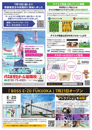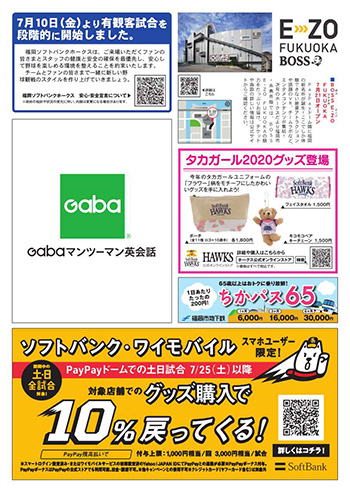 ※掲載内容は、福岡市・糸島市版:7月7日時点、筑後市・久留米市版:7月13日時点の情報です。内容は変更になる可能性がありますので、最新の情報はホークス公式サイトでご確認ください。