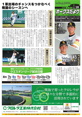 ※一部配布されない地域があります。また、『ホークスだより』の郵送対応は行っておりませんので、あらかじめご了承ください。