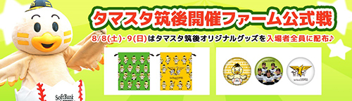 8月8日(土)・9日(日)のvs中日ドラゴンズでは、タマスタ筑後オリジナルグッズを入場者全員へ配布いたします!