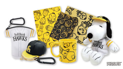 ふうさん&こふうさんの総柄グッズや、ホークスのユニフォームを着たスヌーピーのぬいぐるみ等、キャラクターグッズが新登場!また、小物整理にも便利なキャップ型とユニフォーム型のコイン&カードケースも新発売!