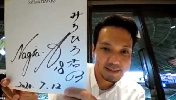 参加者の方は画面越しに精一杯アピール!OBが選んだ最優秀賞の方には、名前入りのサイン色紙やサイン入り試合球などがプレゼントされました。