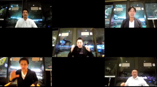 ホークスOBの入来さん・柴原さん・帆足さん・新垣さん・城所さんの5名が、それぞれの部屋に分かれて、抽選で選ばれたクラブホークス会員、J:COM加入者の約100名と一緒にオンラインで試合観戦や交流を楽しみました。