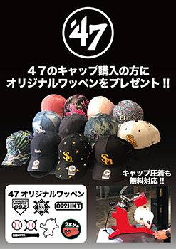 期間中、HAWKS STORE PayPayドーム店で47のキャップをご購入の方に「47オリジナルワッペン」をプレゼントします!47キャップへのワッペン圧着は無料です!