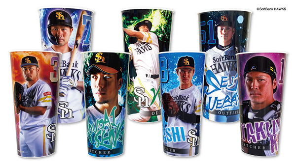 8月25日(火)オリックス・バファローズ戦より、ホークスカフェ3、コカ・コーラで購入できた『選手スーベニアカップ(ワンドリンク付き)』の販売店舗を順次拡大!千賀投手や柳田選手など全7種類の中からお好きな選手の柄とソフトドリンクが選べます♪自宅でも使えてPayPayドームでの観戦記念におすすめ!