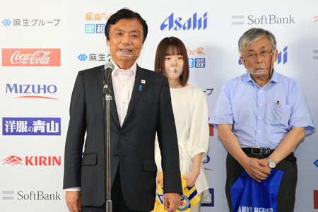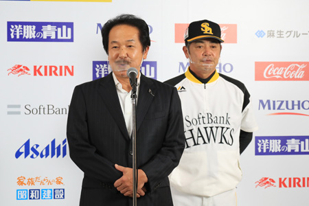 新型コロナウイルスは今後も長く向き合っていかなければならないため、福岡県では十分な医療提供体制を維持・確保できるよう、感染防止対策と社会経済活動の両立を図っております。その中で医療従事者の皆さまは感染リスクを顧みず、また昼夜を問わず、医療現場の最前線でご奮闘いただいております。この場を借りて改めて敬意を表し感謝を申し上げます。私たちにとって医療従事者の皆様、ホークス選手皆さまどちらもヒーローであり、多くの県民、ファンの皆様に元気や感動を与え続けていただいております。両ヒーローの今後のご奮闘とご活躍を心よりお祈り申し上げます。