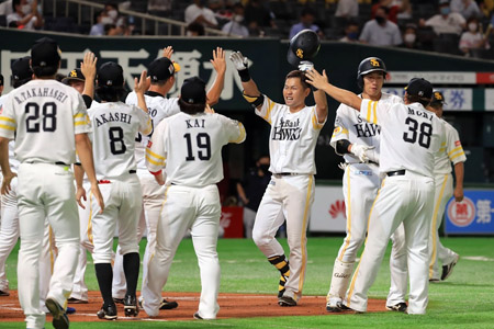 その時のカードでは、まず千賀滉大投手が完全復調を思わせる7回2安打無失点の快投で初戦を勝利すると、2戦目では中村晃選手がプロ13年目にして初のサヨナラ打をマーク。3戦目は笠谷俊介投手が5回1失点と力投してプロ初の先発白星を手にしました。