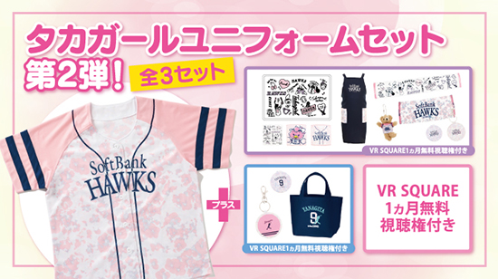 また、タカガールユニフォーム2020とタカガールグッズやVR視聴券がセットになった「タカガールユニフォームセット 第2弾」が、オンラインストアに続き、HAWKS STORE PayPayドーム店でも販売を開始します。