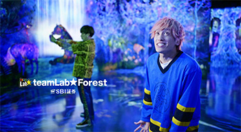 「チームラボフォレスト – SBI証券」では、作品が体の動きに反応して変化することに驚いた様子で「どういう機能?!」と、全作品じっくり見て満喫されました♪