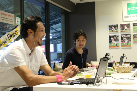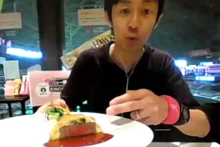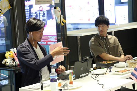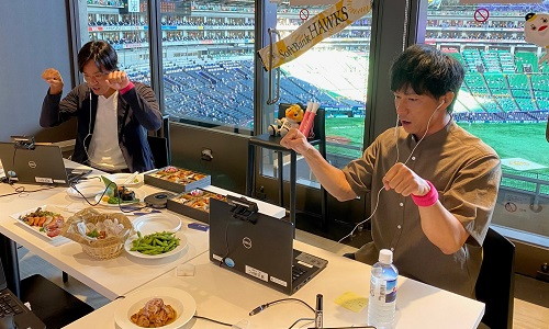 PayPayドームのスーパーボックスで提供している限定メニューをOBに食べていただき、食レポ対決を実施しました。