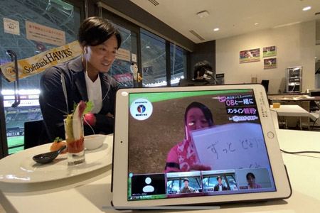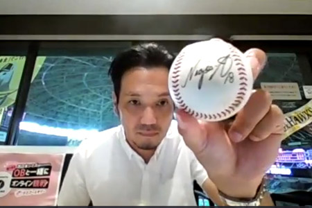 参加者の方は画面越しに歌ったり踊ったり精一杯アピール!OBが選んだ優秀賞の方には、OB直筆サイン入りの当日試合で使用したばっかりのNPB公式試合球やOBが持ち寄った特別な景品などがプレゼントされました。
