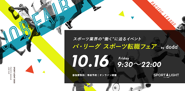 パ・リーグ6球団とパシフィックリーグマーケティング株式会社は、10月16日(金)に「パ・リーグ スポーツ転職フェア by doda」をオンライン上で開催いたします。