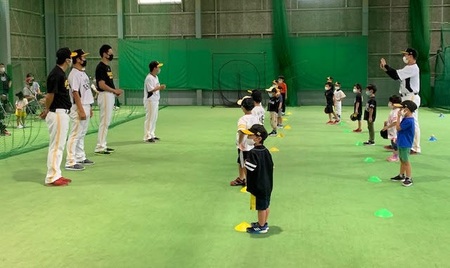 ホークスジュニアアカデミーのキッズスクール&ジュニアスクールの体験会です。キャッチボール・ノック・トスバッティングなどを行います。
