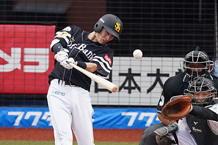 そして周東佑京選手はマリーンズ戦の3試合で全てマルチ安打をマーク。現在2試合連続猛打賞を記録し、26日の試合では1試合4打点も挙げました。守備で悔しいミスをしてしまう場面もありますが、決して目を背けることなく自分自身に向き合って日々の練習に取り組んでいます。その姿勢が今は打撃の方で結果に表れてきています。