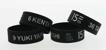 ソフトバンクホークス誕生15周年記念デザインのシークレットグッズは3種類!対象選手20選手の背番号がデザインされた、ベアフィギュアキーチェーン、シリコンリストバンド、キャップ型キーチェーンです!