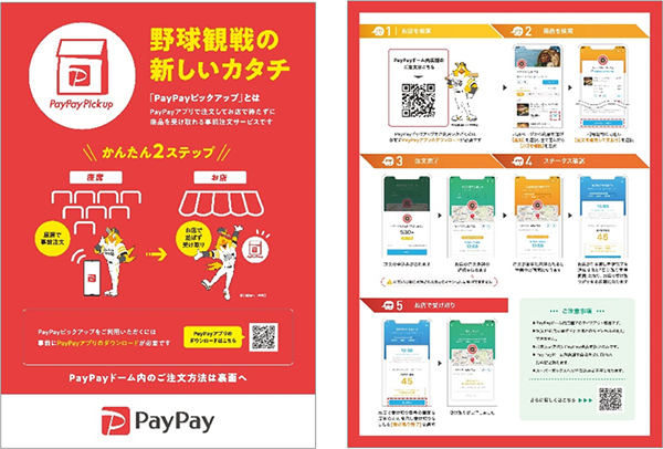 ※「PayPayピックアップ」の対象店舗などの詳細については、球場内の掲示や、ホームページなどでご案内します。