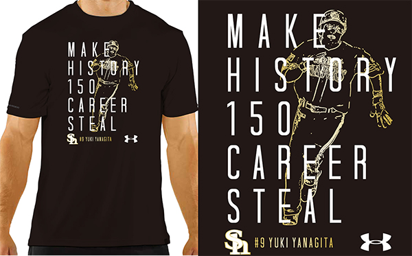 また、柳田悠岐選手の通算150盗塁を記念したTシャツもHAWKS公式オンラインストアで受注受付しています。