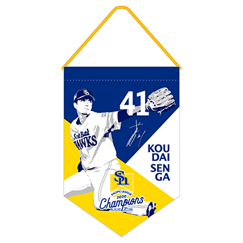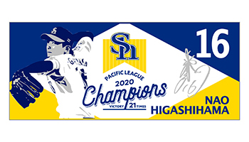2020年パ・リーグ優勝記念の選手別フェイスタオル。記念ロゴと選手のプレーシーンをデザインした、記念になるアイテムです。
