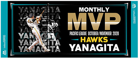これを記念して、柳田選手10、11月度月間MVP受賞記念グッズをHAWKS公式オンラインストアおよびHAWKS STORE PayPayドーム店にて販売します!