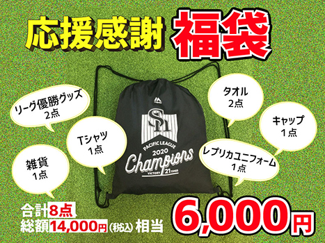 何が入っているかお楽しみ!総額14,000円(税込)相当、アパレルを含め、合計8点のグッズが入る応援感謝福袋を、6,000円で販売いたします。HAWKS STORE PayPayドーム店限定!数に限りがございますので、気になる方はお早めに!