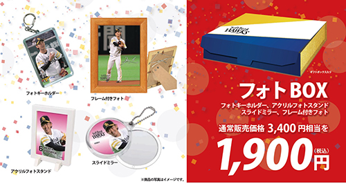 | 注意事項 | ※販売店舗によりBOXのデザインが異なります。(PayPayドーム店:15thデザイン、オンラインストア:選手デザイン) ※封入される商品はランダムとなり、商品をお選びいただく事が出来ません。 ※お客様都合による交換・返却は致しかねます。 ※なくなり次第終了となります。 |