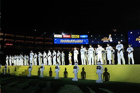 今年は、PayPayドームはもちろん、7月に開業した「BOSS E・ZO FUKUOKA」内にある「よしもと福岡 大和証券/CONNECT劇場」でのライブビューイングやトークショー、さらにオンラインでのふれあいトークイベントなどが行われました。
