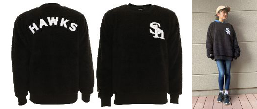 左胸のShロゴと背面部分に「HAWKS」ロゴを配置したボアクルー。軽量で保温性に優れている為、ストレスフリーで着用いただけます。
