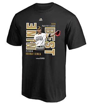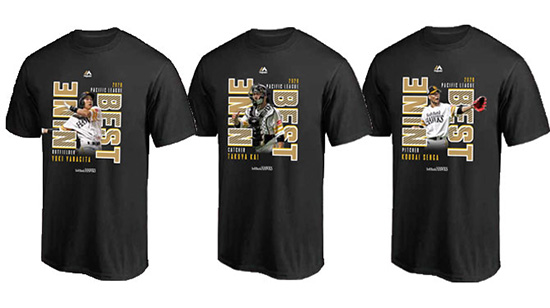 2020シーズンのベストナインに、パ・リーグ投手部門で千賀滉大投手、捕手部門で甲斐拓也選手、外野手部門で柳田悠岐選手が選出されました!これを記念し、本日よりホークス公式オンラインストアにて各選手の記念Tシャツを販売します!