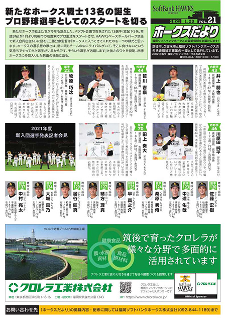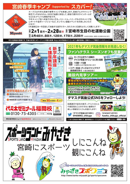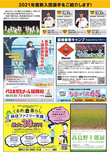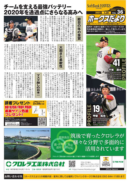 1月号の福岡市・糸島市版は千賀投手と甲斐選手、筑後市・久留米市版は2021年度の新入団選手を特集した内容でお届けします。