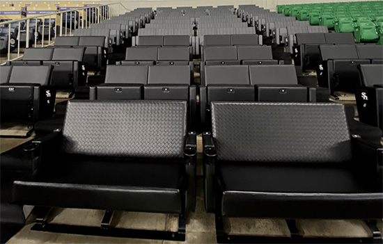 PayPayドーム3塁側内野席上段エリアに位置する、2〜3名掛けのソファシートです。肘部分にはエンブレムをあしらい、黒を基調としたシックな雰囲気でご観戦いただけます。2名席にはベンチソファや、座席幅が広めのワイドタイプもご用意し、長時間座っても疲れにくいクッション性のあるシートでより快適にご家族やご友人とのグループ観戦に最適な座席です。