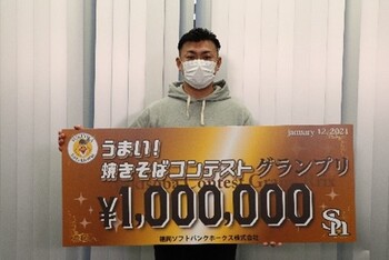 グランプリと告げられた時には膝が震えました。いただいた100万円で福岡ソフトバンクホークスジュニアチームのスポンサーになりたいです。この焼きそばは福岡でしか食べられない味だと思います。