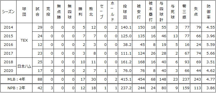 | 球歴 | Texas Rangers (2014–2017) 北海道日本ハムファイターズ (2018-2020) |