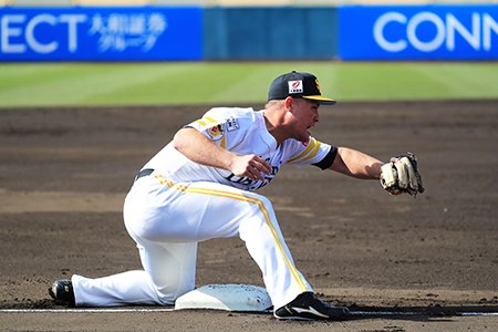 シートノックでは各選手が大きな声を張り上げて、きびきびした動きを見せていました。そして全体練習後には松田宣浩選手が志願の特守。リチャード選手とともに三塁のポジションで、本多雄一内野守備走塁コーチのノックを受けました。