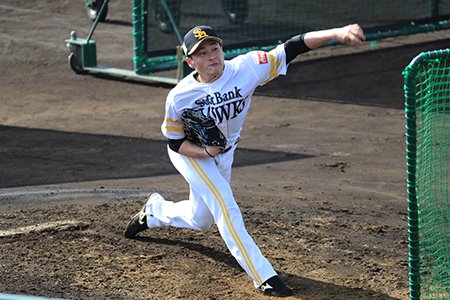 そして、この日から行われた打撃投手には武田翔太投手、大竹耕太郎投手、泉圭輔投手、笠谷俊介投手が登板しました。今季で7年目となる笠谷投手は昨季プロ初勝利を含む4勝をマーク。工藤公康監督からの期待も高く、今季は自身初の開幕ローテ入りを狙ってキャンプを過ごしています。しかし、この日は後輩の川瀬晃選手、ベテランの川島慶三選手を相手に47球を投じて半分以上の27球がボール球と制球に苦しみました。「自分のフォームのタイミングが合っていなかった」と反省。自己採点は50点と悔しがりましたが、「自分の中でまだやれると思うので50点。納得する球はあったので、まだよかったと思う」と表情は明るく、「次のシート打撃でしっかり修正したところを見せたい」と前を向きなおしていました。