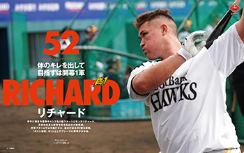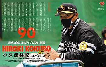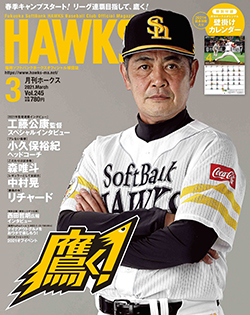 まずは『月刊ホークス』特別連載企画「工藤公康監督インタビュー」。今季初めて工藤監督に、春季キャンプ、そして今シーズンへの意気込みを語っていただきました。巻頭では、春季キャンプを大特集しています。まずは9年ぶりにホークスへ帰ってきた小久保裕紀ヘッドコーチにインタビュー。工藤監督から主に打撃陣の指導を任され、「コーチの言うことがブレていては選手を迷わせてしまう。今は指導方針の統一を図っているところ」と、早速手腕が発揮されています。また投手を代表して、森唯斗投手にインタビュー。ホークスの守護神として、今シーズンも9回のマウンドに立つ意気込みを熱く語ってくれています。打撃陣は中村晃選手にインタビュー。選手会長2年目として迎える今シーズン。「レギュラーとして1年を通して試合に出たい」と、今季の目標を語ってくれています。さらに若手選手を代表してリチャード選手にもインタビューを行いました。小久保ヘッドからも熱く指導を受けており、今季はプロ初ホームランを目標に毎日バットを振り込んでいます。
