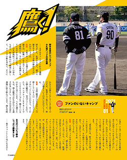 昨年現役を引退し、今季からホークスの広報担当になった西田哲朗氏にもインタビュー。春季キャンプでは取材エリアを広げるなど、「新型コロナウイルスの影響で無観客となった春季キャンプを、少しでも多くメディアに取り上げてもらい、たくさんのファンに届けたい」と精力的に業務に取り組んでいます。そんな西田広報に仕事の意気込みを聞くとともに、昨年まで共に戦ったホークスの注目選手についても語ってくれています。