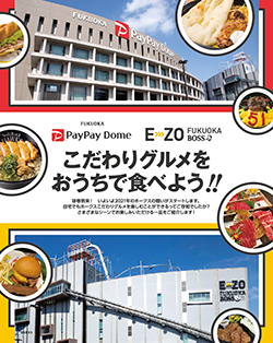 また、PayPayドームとBOSS E・ZO FUKUOKAのグルメをお家でホークス戦を観戦しながら楽しめるように、テイクアウトグルメをご紹介。ホークスグルメを堪能しながらホークス戦も楽しもう!