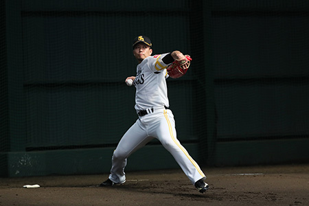 2点を追う六回、走者を2人置いて右翼線を破る2点三塁打を放ちました。上林選手は紅白戦で5打数3安打3四球。そして対外試合は2試合とも2打数1安打をマークしており、実戦5戦すべてで安打を放っています。「今日は左投手から打てた。前の日に工藤監督が特打で投げてくれたおかげです」とにっこり。「監督からは『見逃し方が良くなっているし、逆方向に強い当たりが出ている』と言ってもらえました」と話していました。オフ期間からの取り組みが上手くいっており、「変えないように、ブレないようにやっていきたい」と心に誓っていました。